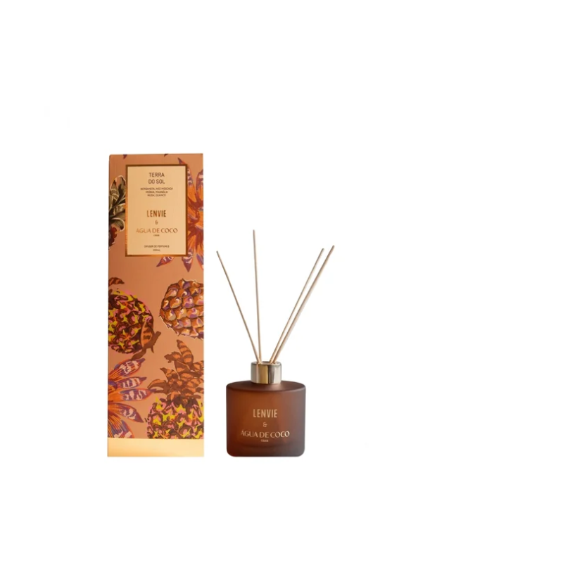 O Difusor de Perfume Terra do Sol 200ml, em [collab com a Água de Coco] , traduz com autenticidade o estilo de vida brasileiro e solar, levando a energia do verão para dentro de casa 365 dias no ano. Sua fragrância envolvente combina a luminosidade da Bergamota e o toque especiado da Noz Moscada com a delicadeza da Peônia e da Magnólia. Finalizada com a sofisticação do Musk e do Guaiaco, essa experiência olfativa traz frescor e leveza para o seu dia a dia.
